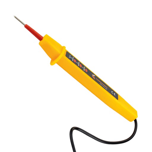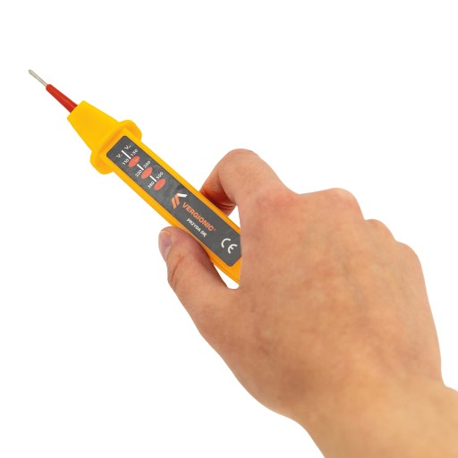 ⚡Próbnik jest łatwy w obsłudze - wystarczy przystawić igły do punktu, w którym chcemy sprawdzić napięcie, a następnie obserwować wyświetlacz, na którym pojawi się dioda informująca o obecności lub braku napięcia.
