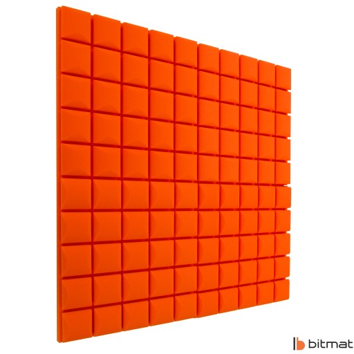 Cena dotyczy 1 sztuki panelu akustycznego Bitmat kostka profilowana bez kleju w kolorze pomarańczowym.