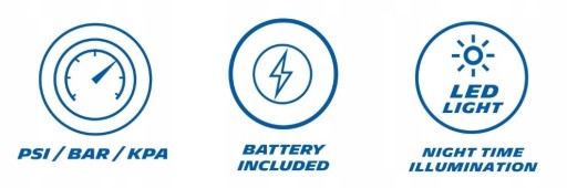 - PEWNOŚĆ WSKAZAŃ – Dzięki cyfrowemu, podświetlanemu wskaźnikowi w MICHELIN Programmable Digital Tyre Pressure Gauge możliwe jest precyzyjne odczytanie wartości ciśnienia z dokładnością +/- 1 PSI, według trzech różnych systemów miar (PSI, kPa, BAR) w szerokim zakresie, odpowiednim dla różnych typów opon. Zakres pomiarów od 5 do 99 PSI (0,4 - 6,80 BAR)