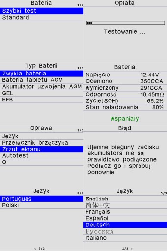 ТЕСТЕР АКБ 12В, ПОЛЬСКИЙ ЯЗЫК ДО 2000А