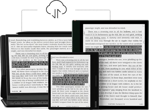 Dzięki łączności bezprzewodowej Wi-Fi 2.4/5GHz możesz połączyć się z internetem i wygodnie pobierać nowe pozycje wprost na czytnik. Możesz także zsynchronizować czytnik z dyskami chmurowymi Google Drive, Dropbox czy OneDrive, aby przenosić swoje dokumenty oraz pliki i mieć do nich dostęp zarówno na ONYX BOOX Page, jak i na smartfonie lub tablecie bez utraty zakładek czy postępu w czytaniu.