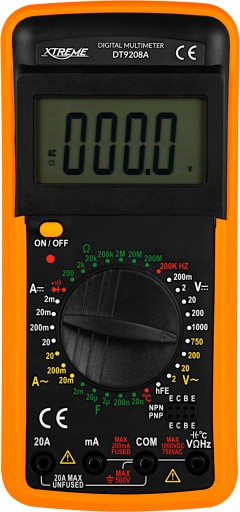 Miernik XTREME jest uniwersalnym narzędziem przeznaczonym do warsztatów czy szkół, ale doskonale sprawdzi się także podczas domowych i profesjonalnych zadań. Cechuje go bardzo czytelny wyświetlacz LCD z możliwością regulacji i ustawienia pod kątem oraz zabezpieczająca i zdejmowalna gumowa osłona, a z tyłu wbudowana została podpórka która ułatwi odczyt wyników podczas wykonywania pomiarów. Do zestawu zostały dołączone także niezbędne przewody.