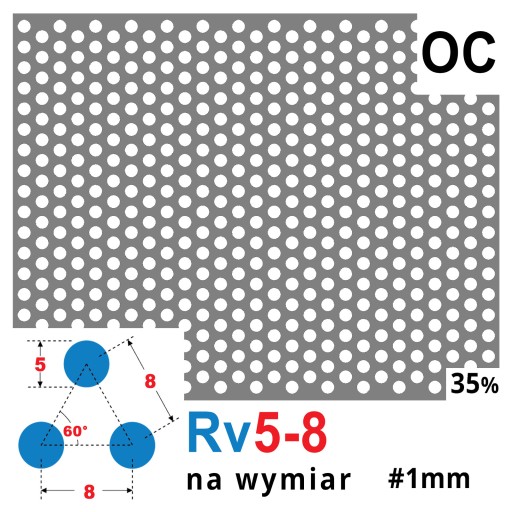 Blacha perforowana OCYNK OCZKO 5 mm PRZERWA 3 mm Rv 5-8 - NA WYMIAR