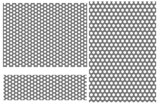 Blacha perforowana ocynkowana (ocynk ogniowy srebrny) z oczkami okrągłymi w układzie mijanym. Cena za 10 cm2 (1 dm2) (10x10 cm)