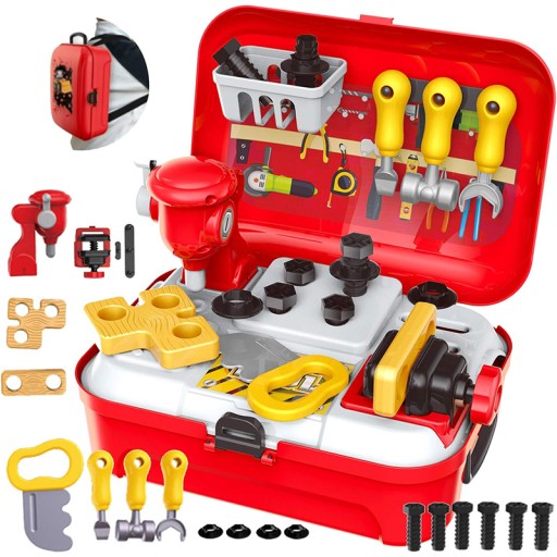 Ten kompletny zestaw zawiera 25 elementów, które umożliwiają dziecku rozwijanie umiejętności manualnych i zdolności konstrukcyjnych. Przenośna walizka, dostępna w zestawie, umożliwia łatwe przenoszenie wszystkich narzędzi, nawet na plecach.