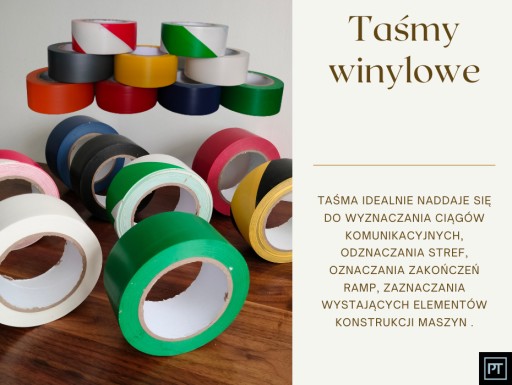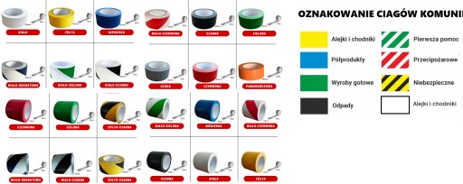 Taśma idealnie naddaje się do wyznaczania ciągów komunikacyjnych, odznaczania stref, oznaczania zakończeń ramp, zaznaczania wystających elementów konstrukcji , maszyn itp.
