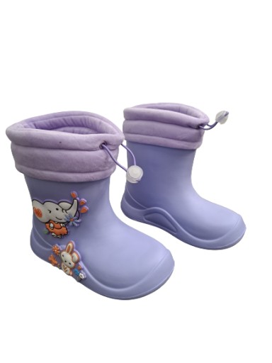 Kalosze dziecięce firmy Apawwa. Model wykonany z wysokogatunkowego tworzywa. Kalosze ocieplone miękkim wkładem z polaru. Wkład jest wyjmowany co sprawia,że buty są wielosezonowe.