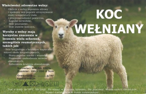 Koc/ pled wełniany można prać ręcznie w temperaturze 300C.
