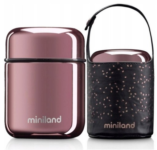 Wyrafinowany design - Mini termos do posiłków od Miniland z chromowanym wykończeniem, o pięknym, różowym kolorze.