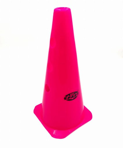 Pachołek treningowy o solidnej podstawie, przeznaczony do oznaczenia terenu w grach, zabawach czy ćwiczeniach i treningach.