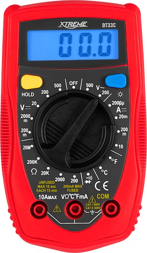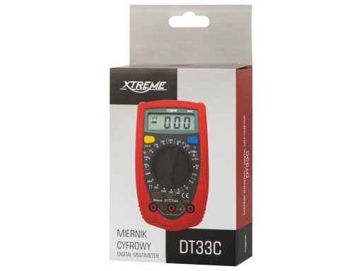 Miernik XTREME jest uniwersalnym narzędziem przeznaczonym do warsztatów czy szkół, ale doskonale sprawdzi się także podczas domowych i profesjonalnych zadań. Cechuje go bardzo czytelny wyświetlacz LCD oraz zabezpieczająca i zdejmowalna plastilkowa osłona, a z tyłu wbudowana została podpórka która ułatwi odczyt wyników podczas wykonywania pomiarów. Do zestawu zostały dołączone także niezbędne przewody.