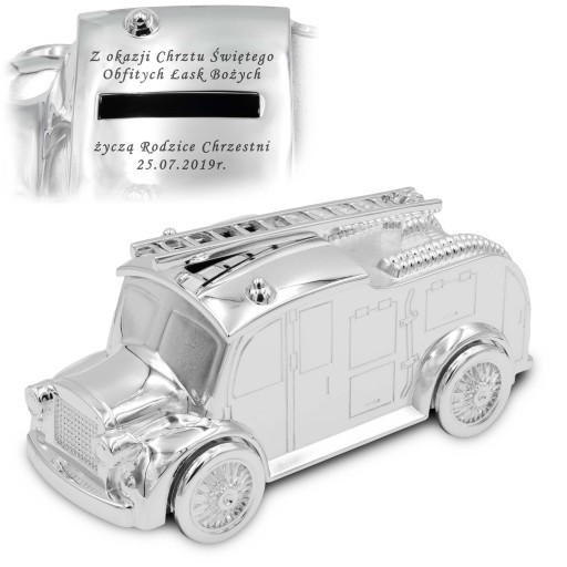 Skarbonka Wóz Strażacki z GRAWEREM Chrzest Roczek (produkt nr: 390)
