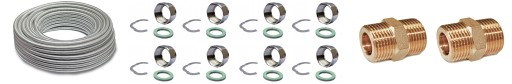 Zawartość zestawu DN20 1": 10 mb rury, 8 kpl. zestawów przyłączeniowych, 2 szt. nypli