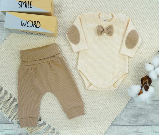 Elegancki komplet dla niemowlaka: body z muchą + bezuciskowe spodnie.