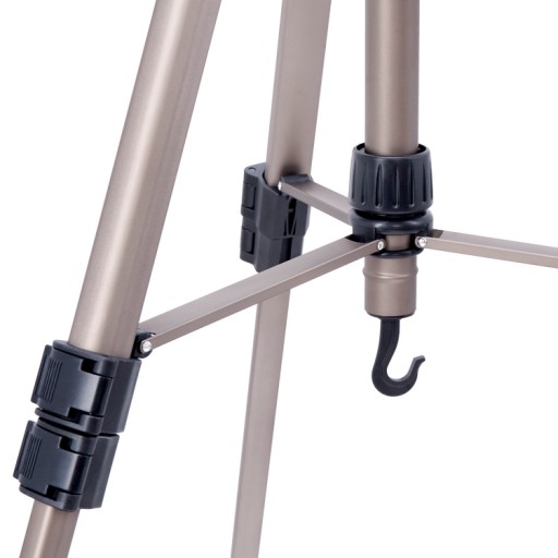 - Dwie poziomice -w głowicy i w statywie zapewniające prawidłowe wypoziomowanie statywu na nierównym podłożu.