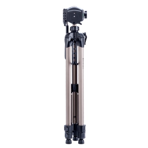 Teleskopowo rozkładane nogi statywu można wysuwać niezależnie, dzięki czemu możemy dostosować położenie statywu do nierówności terenu. W celu poprawienia stabilności po rozłożeniu nogi blokowane są tzw. trójnikiem.