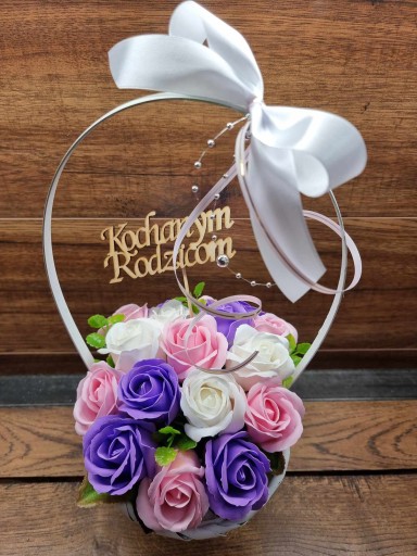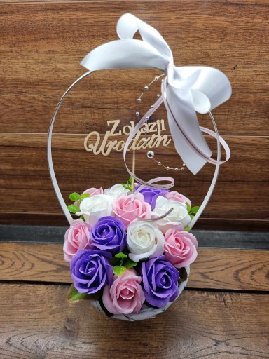Bukiet kosz upominkowy kwiaty mydlane róże mydlane PREZENT upominek Topper