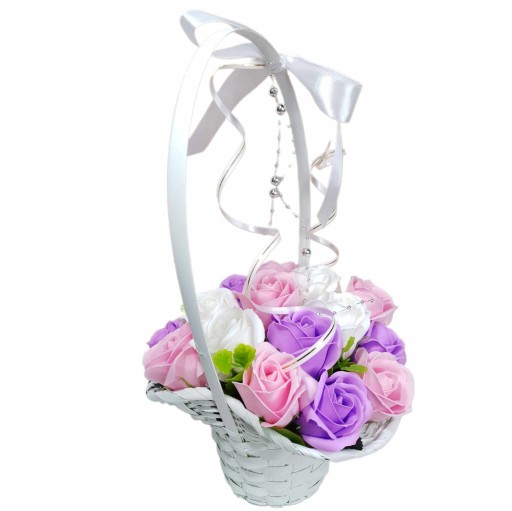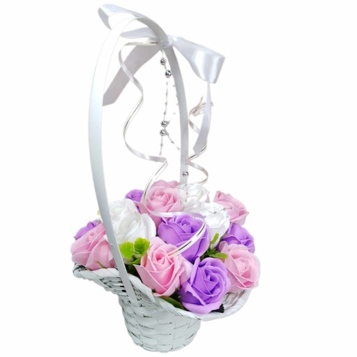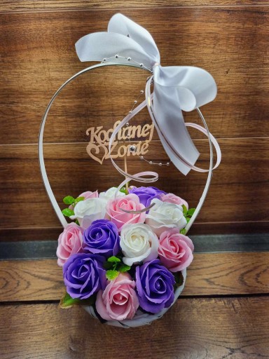 ❤️ Ozdobny kosz, bukiet z kwiatami mydlanymi - piękny prezent oraz delikatnie pachnąca dekoracja dla twojego wnętrza ❤️