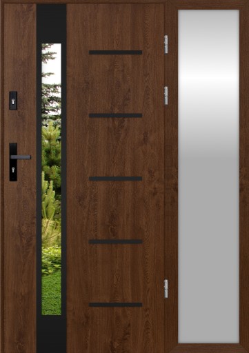 Model drzwi wejściowych dedykowany budownictwu energooszczędnemu. Skrzydło o grubości 73 mm wypełnione zostało grafitowym polistyrenem spienionym. Ciepła ościeżnica, w połączeniu z progiem aluminiowym Roto, przekładką termiczną i czterostronną przylgą, zapewnia energooszczędność na najwyższym poziomie. Drzwi zewnętrzne wyposażone są w trzy zawiasy 3D o średnicy 20 mm, które charakteryzują się zdolnością do przenoszenia dużych obciążeń, co znacznie zwiększa funkcjonalność i komfort użytkowania. Konstrukcja wejściowa wyposażona w taki zawias nie ma skłonności do opadania. Dodatkowo zawiasy umożliwiają regulację w trzech płaszczyznach, co zapewnia symetrię położenia skrzydła względem ościeżnicy (regulacja góra/dół i lewo/prawo), a także odpowiedni docisk skrzydła do ościeżnicy (trzecia płaszczyzna regulacji). Dwa niezależne zamki z trzema bolcami i trzy bolce antywyważeniowe zapewniają wysoki stopień odporności na włamanie.