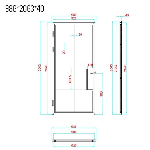 - wymiary skrzydła z ramą 986x2063x40 mm