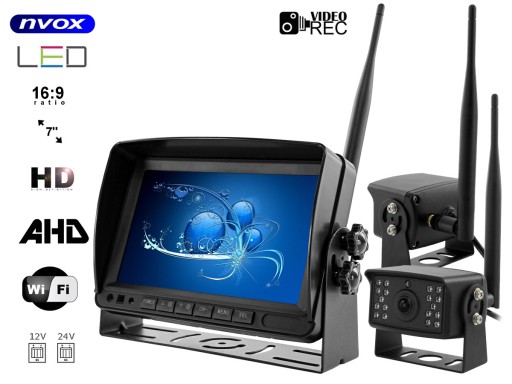 Zestaw samochodowy monitor AHD z funkcją nagrywania oraz 2 kamery bezprzewodowe AHD 12/24V