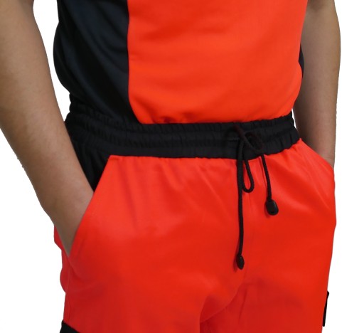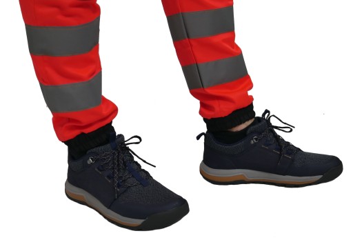 - dwa równoległe pasy na łydkach z materiału odblaskowego o szerokości 5cm.