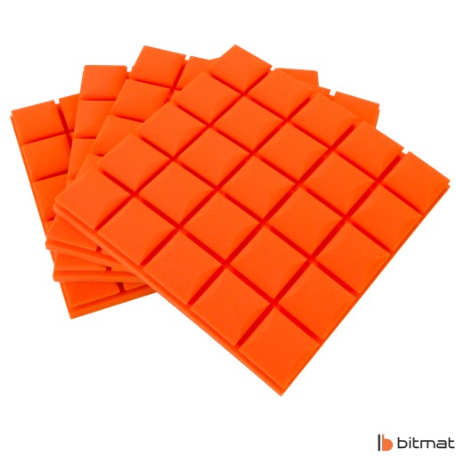 1 sztuka = 4x panel akustyczny kostka wypukła bez kleju 50 cm x 50 cm grubości 5 cm w kolorze pomarańczowym