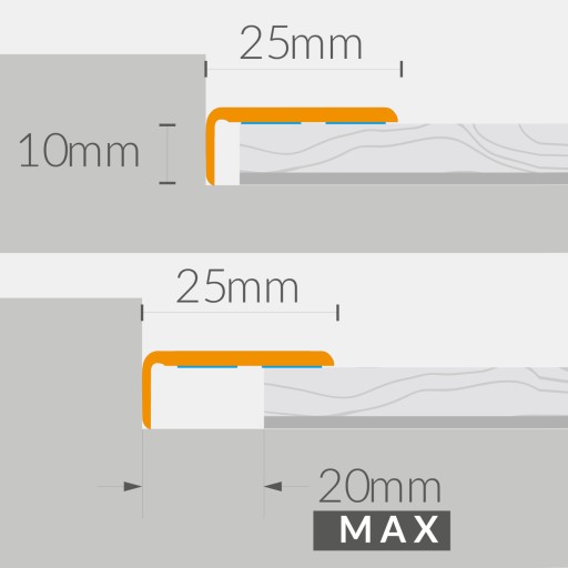 Listwa progowa Arbiton CS25 to profil przypodłogowy z serii COLOR SYSTEM – najbardziej uniwersalny system profili. Dostępny w 33 kolorach dzięki czemu można go dopasować do wielu rodzajów i kolorów podłóg. Profil zakończeniowy CS25 umożliwia zamaskowanie szczeliny dylatacyjnej, w miejscach gdzie nie przykrywa jej np. listwa przypodłogowa. Ma zastosowanie np. do wnęki przy drzwiach wejściowych czy balkonowych. Sposób montażu: Klej.