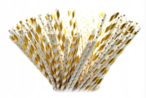 SŁOMKI RURKI PAPIEROWE paski kropki złote 10szt