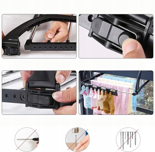 - -Nasz stojak do suszenia jest wystarczająco wytrzymały, aby utrzymać wagę do 10 kg. Nie musisz się martwić, że ubrania się zsuną.