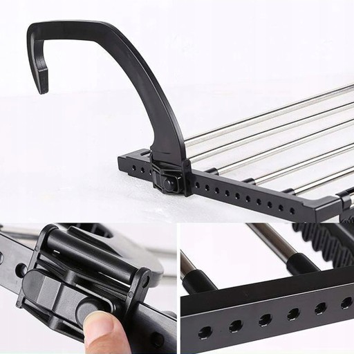 ☑️Regulowany gumowy haczyk: hak stojaka na pranie można ustawić w 17 pozycjach, aby spełnić różne potrzeby związane z wieszaniem. Możesz powiesić stojak tam, gdzie chcesz. Gumowe haki chronią również poręcz przed zadrapaniami