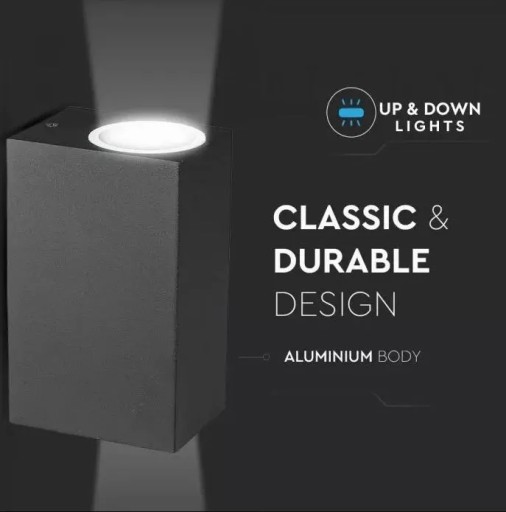 Kinkiet Ścienny V-TAC GU10 Aluminium Kwadrat Czarny Góra Dół IP44 VT-7652