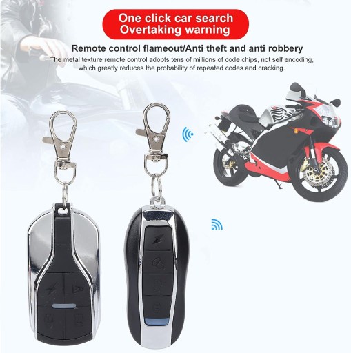- System alarmowy motocyklowy jest dostarczany z 2 pilotami zdalnego sterowania, nie ma potrzeby wkładania klucza do działania, inteligentniejsza obsługa.