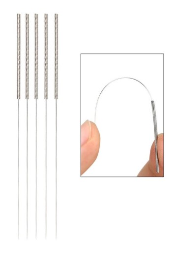 Igła do czyszczenia dysz drukarek 3D. Służy do ręcznego udrażniania otworu ujścia filamentu. Wysoka elastyczność czyścika sprawia, że igła się nie łamie i nie uszkadza wnętrza dyszy.