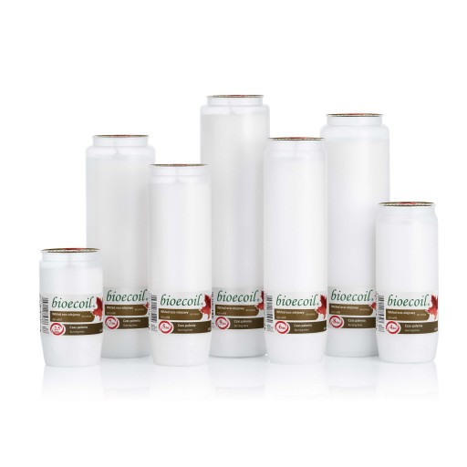 Wkłady do zniczy bioecoil® posiadają oryginalne tuby, w znacznej części produkowane z tworzywa pochodzącego z recyklingu. Istotną cechą produktu jest estetyka wykonania, charakteryzują się one bowiem, przyjemną dla oka linią i solidnością wykonania.