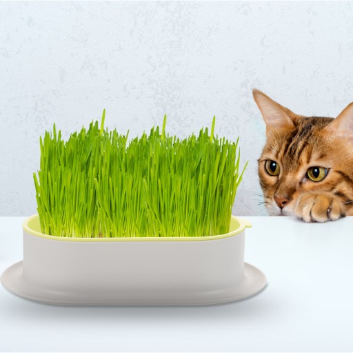Praktyczny pojemnik na trawę dla kotów o małych i kompaktowych rozmiarach, nie zajmujący zbyt dużo miejsca, może być używany do użytku dla kotów domowych.