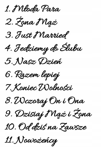 Obok prezentujemy kilkanaście różnych tekstów do wyboru, prosimy o podanie numeru jeżeli będzie inny niż te standardowe.