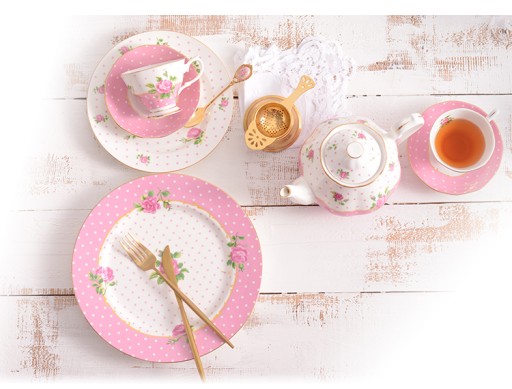 Zestaw wykonany z porcelany Bone China, charakteryzującej się elegancką i białą barwą z delikatnym połyskiem a także wyjątkową wytrzymałością przy zachowaniu lekkości i delikatności.