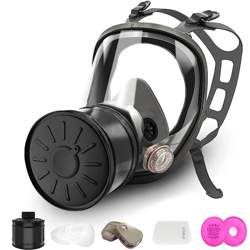 - ✔️【Ergonomiczny i wygodny】: Maska gazowa jest wykonana z wysokiej jakości gumy i jest wygodna w noszeniu. Regulowany pałąk pasuje do głów większości ludzi. UWAGA: Z tym respiratorem pełnotwarzowym nie można nosić okularów. Po założeniu wymagany jest test szczelności.