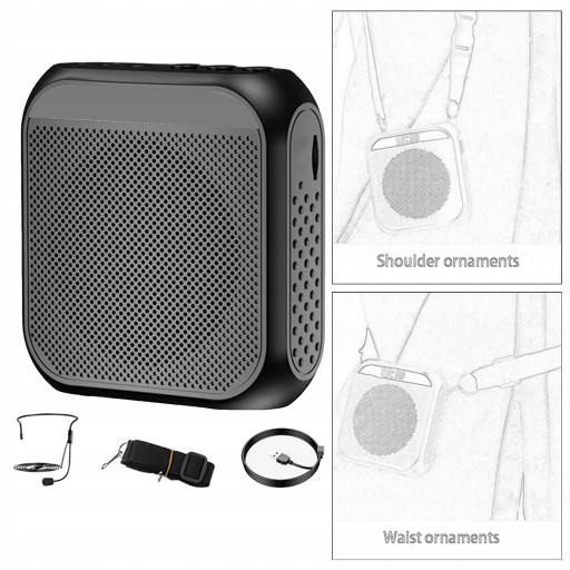 [Wygodny] Wzmacniacz głosu mini Bluetooth nadaje się na większość okazji, regulowany pasek do zawieszenia na ramieniu lub w talii, wyposażony w metalową klamrę.