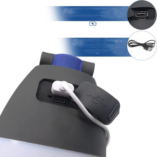 👉Akumulator USB: wystarczy podłączyć kabel USB do głowicy ładującej, aby w pełni naładować lampę kempingową w ciągu 3,5 godziny, nie trzeba się martwić o nagłą awarię zasilania.