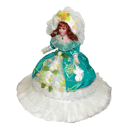 Ręce i głowa wykonane są z pięknie wykonanej porcelany.