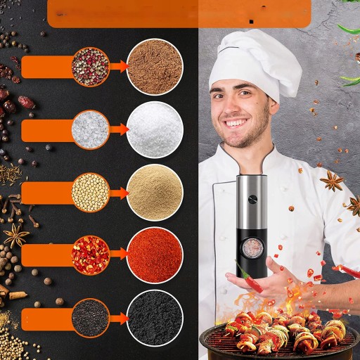 - ✔️ Obsługa jedną ręką: włóż pieprz lub sól do pojemnika, naciśnij i przytrzymaj przycisk, aby łatwo i skutecznie zmielić, a drugą ręką wymieszaj jedzenie z solą lub pieprzem.