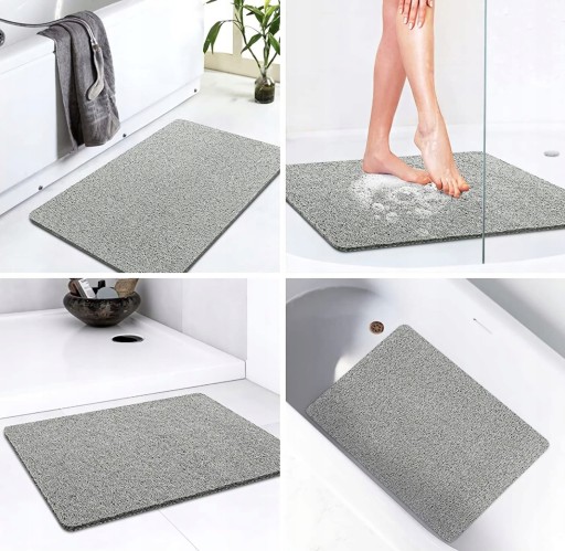 - Dolna powierzchnia maty prysznicowej wykonana jest z lateksu TPE, który jest bardziej antypoślizgowy niż inne PVC lub materiały antypoślizgowe, co utrzymuje warstwę prysznicową w pozycji antypoślizgowej, dzięki czemu nie spadnie ani nie ześlizgnie się,