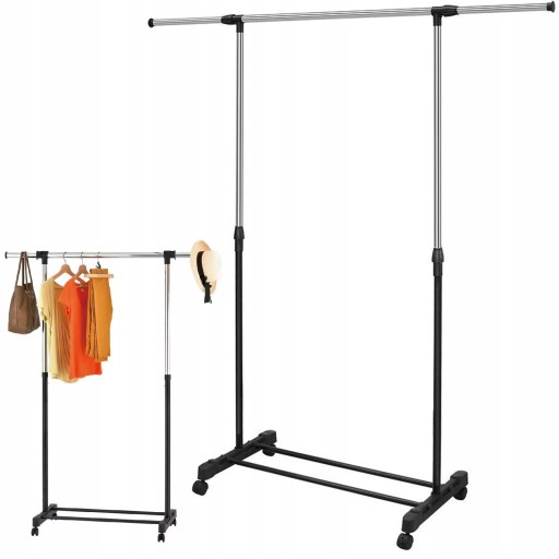 - Wieszak jest wyposażony w 4 wzmocnione koła (w tym 2 z blokadą), które obracają się o 360°, płynnie przesuwają się pod dużym obciążeniem i stoją stabilnie, dzięki czemu można je łatwo obracać w przód iw tył.