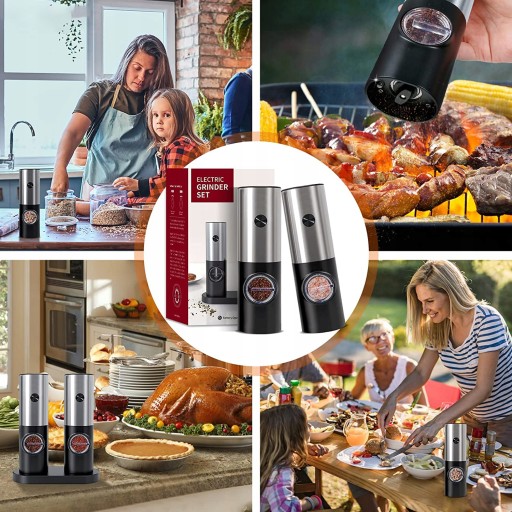 - ✔️ Akumulator: dzięki stacji ładującej możesz ładować 2 młynki do pieprzu za pomocą interfejsu USB typu C, można go w pełni naładować w ciągu 2,5 godziny i zmielić 200-300 razy w krótkim czasie. Nie ma potrzeby kupowania od 4 do 6 dodatkowych baterii.