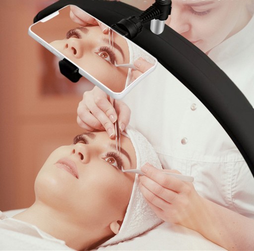 【Z uchwytem na telefon i pilotem】 z regulowanym uchwytem na telefon, który jest podłączony do sieci bezprzewodowej na rynku, może łatwo komunikować się z telefonem na lampie w celu udostępniania wideo. Z pilotem, który zapewnia elastyczną obsługę.