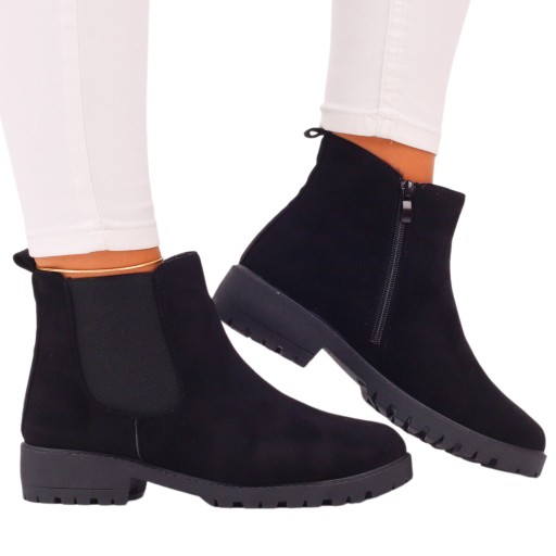 Damskie, wsuwane botki na obcasie w kolorze czarnym. W środku ocieplane miękkim futerkiem, co sprawia wygodne użytkowanie, idealne na zimę❗ Posiadają zapięcie na suwak, co umożliwia łatwe zakładanie. ❄ Stabilna, gruba podeszwa dobrze amortyzuje stopę oraz chroni przed zimnem.❄ Wykonane z dobrych jakościowo materiałów. Prosty fason sprawia, że pasują do wielu stylizacji.