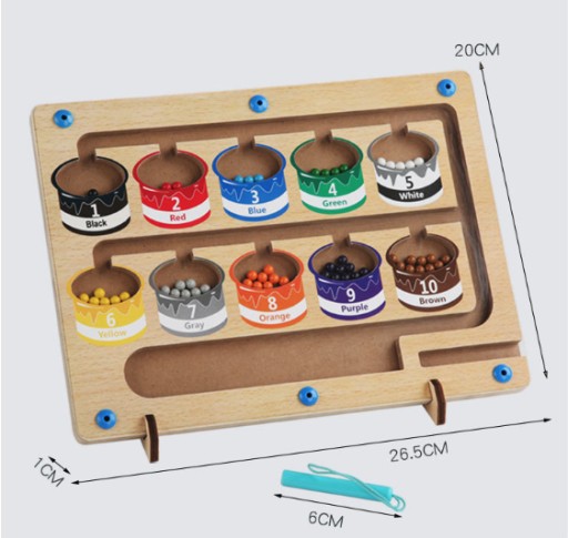Magnetyczny labirynt kolorów i liczb, drewniana tablica magnetyczna Montessori dla dzieci.