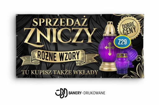 Baner reklamowy 2m x 1m gotowy do powieszenia. Znicze Chryzantemy